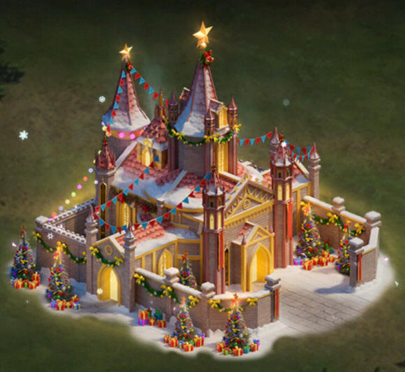 活动期间用道具装扮圣诞树,就能狂攒贡献值!攒够贡献值除了能兑换贡献宝箱,更能直接解锁这款 冬日限定 梦幻城堡外观!